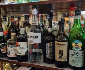 Più di 50 tipi di Cocktails, 7 tipi di Spritz, numerosi Spiriti e Liquori italiani ed esteri, Grappe bianche o barricate da singolo vitigno o blend, Whisky single malt, torbati, rye, bourbon, Rhum di diversi metodi e provenienze, molti i tipi di Gin, Cognac, Brandy, Armagnac.
